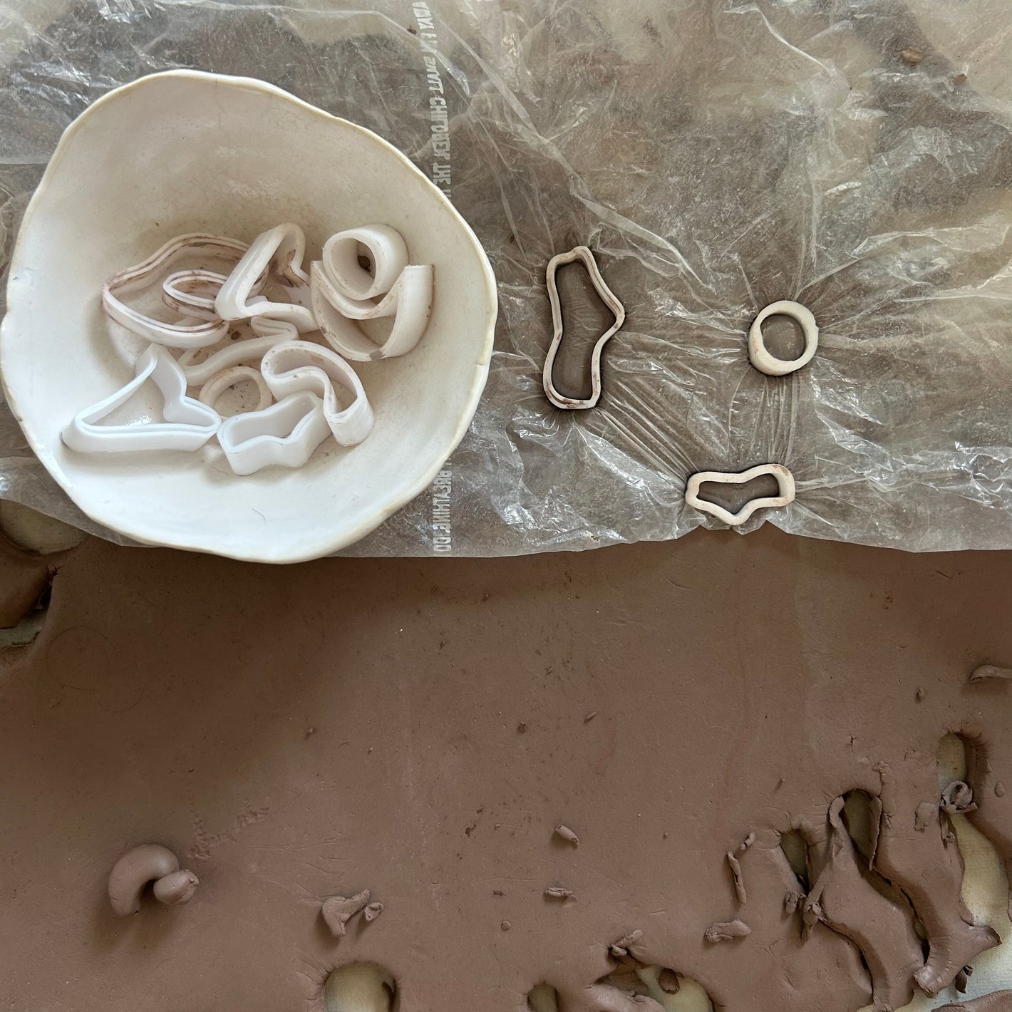 The 3D printed cutouts are used to cut away forms from clay slabs.