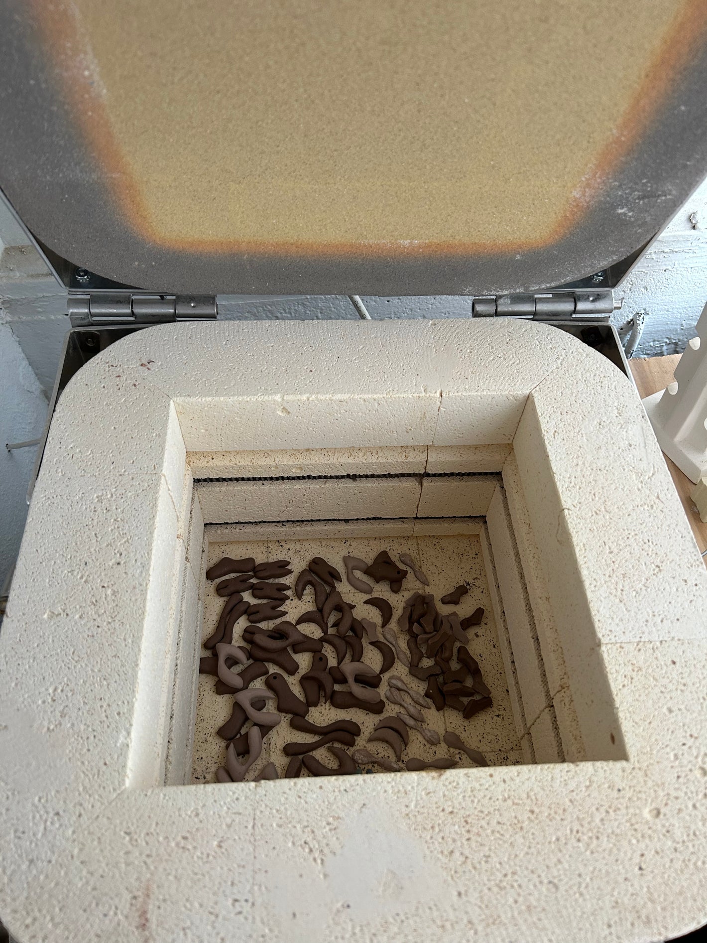 After the luster dries for 24h, the jewelry is slow fired to cone 018. This is the final firing.